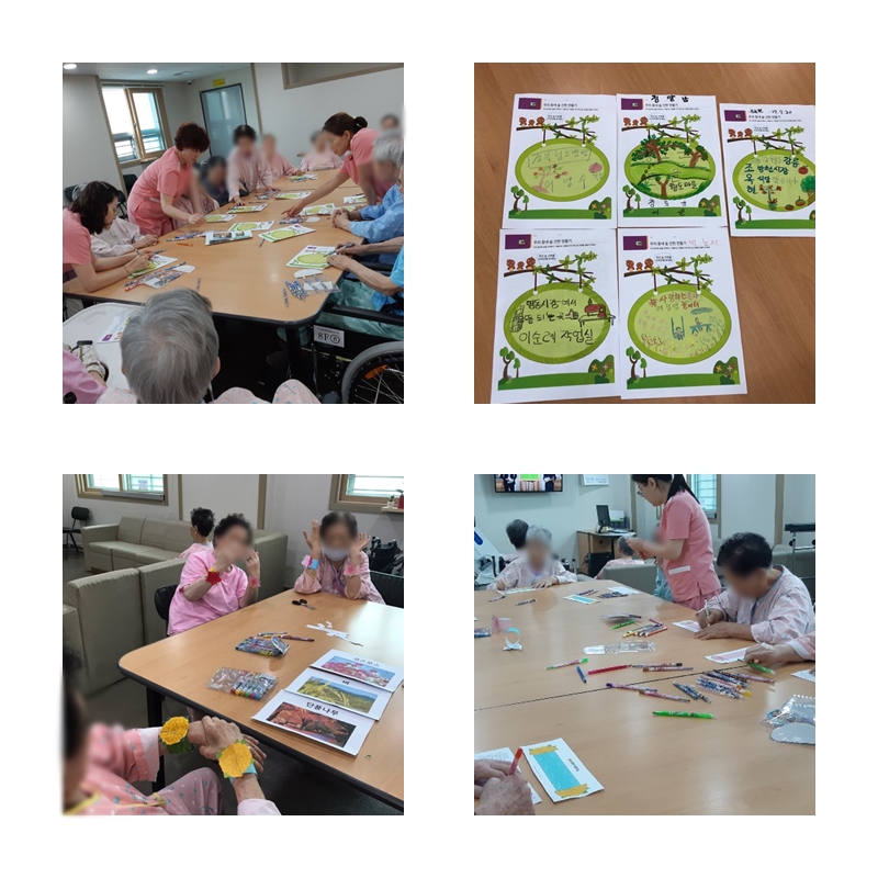 9월 미술치료 - 꽃팔찌 만들기, 우리 동네 숲간판 만들기 페이지 정보 작성자 천유원실버타운 작성일19-09-30 17:47 조회2,737회 댓글0건 관련링크 이전글 다음글 목록 본문 일시: 2019.9.30 (월)장소: 각 층별 생활실 이전글 다음글 목록