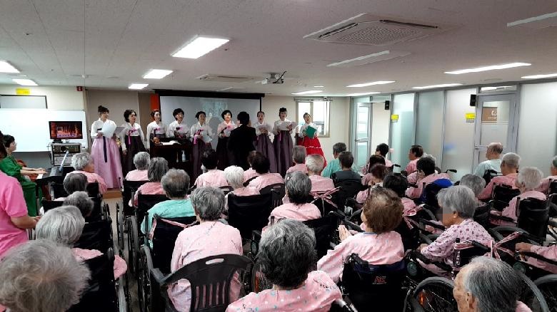 한국 예불합창단 공연 페이지 정보 작성자 천유원실버타운 작성일18-09-28 08:41 조회1,776회 댓글0건 관련링크 이전글 다음글 목록 본문 일시 : 2018.06.27(수)장소 : 10층 대프로그램실 한복을 입은 합창단 선생님들께서 방문하여 공연을 하였습니다. 이전글 다음글 목록