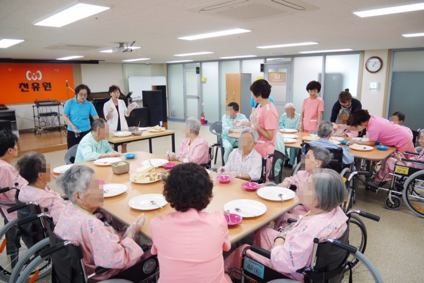 요리교실 페이지 정보 작성자 천유원실버타운 작성일17-09-27 17:56 조회2,420회 댓글0건 관련링크 이전글 다음글 목록 본문 강사:영양사 정정숙장소:10층 대프로그램실 익숙한 감자로 샐러드를 만들어 샌드위치를 만들어 보는 시간이었습니다.어르신들께서는 감자 키우는 법, 감자로 만드는 음식 등을 이야기하시며 즐거워하셨고평소 잘 먹지 못하는 간식을 직접 만들어 드실 수 있는 시간이었습니다. 이전글 다음글 목록