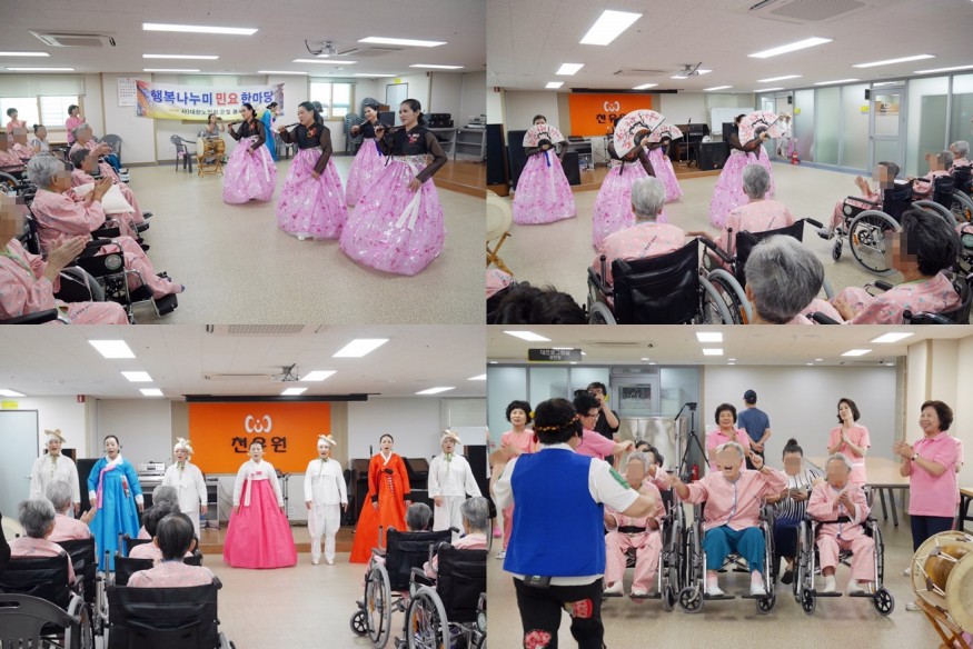 민요한마당 페이지 정보 작성자 천유원실버타운 작성일17-09-27 18:09 조회2,199회 댓글0건 관련링크 이전글 다음글 목록 본문 강사:하느리봉사단장소:10층 대프로그램실 우리춤, 민요공연, 부채춤, 품바 등 다양한 공연에 어르신들께서는 즐거워하셨고함께 춤을 추고 노래를 따라 부르는 어르신들이 많았습니다. 이전글 다음글 목록