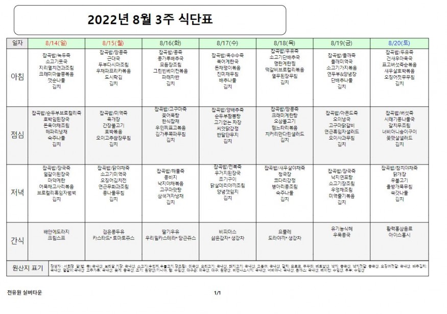 8월 3째주 식단표 페이지 정보 작성자 천유원실버타운 작성일22-08-16 16:37 조회5,719회 댓글0건 관련링크 이전글 다음글 목록 본문 8월 3째주 식단표 댓글목록 등록된 댓글이 없습니다. 이전글 다음글 목록