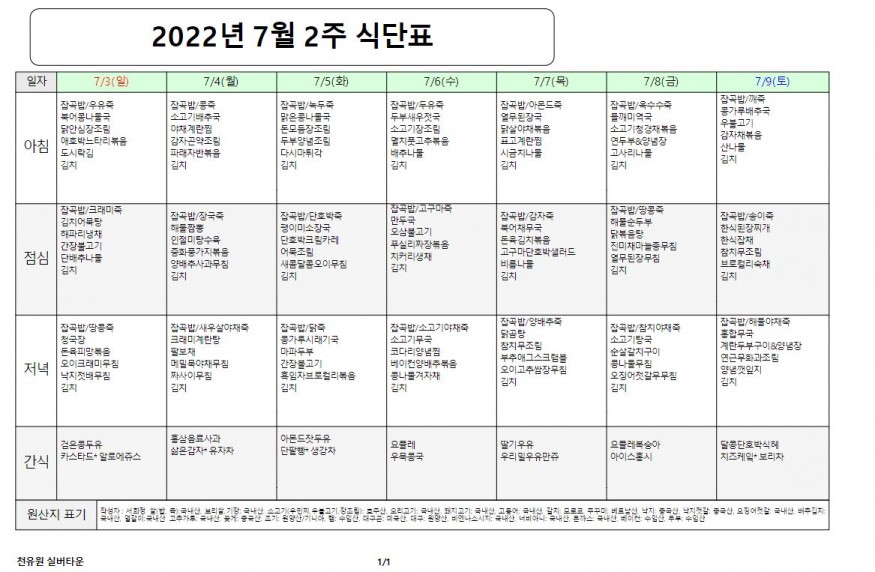 7월 2째주 식단표 페이지 정보 작성자 천유원실버타운 작성일22-07-04 09:41 조회5,749회 댓글0건 관련링크 이전글 다음글 목록 본문 7월 2째주 식단표 댓글목록 등록된 댓글이 없습니다. 이전글 다음글 목록