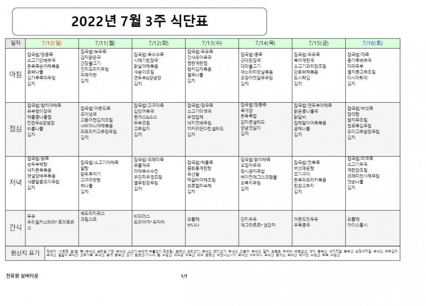 7월 3째주 식단표 페이지 정보 작성자 천유원실버타운 작성일22-07-12 16:54 조회5,709회 댓글0건 관련링크 이전글 다음글 목록 본문 7월 3째주 식단표 댓글목록 등록된 댓글이 없습니다. 이전글 다음글 목록