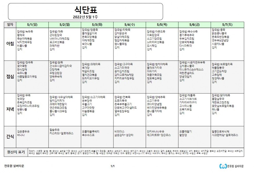 5월 1째주 식단표 페이지 정보 작성자 천유원실버타운 작성일22-05-02 08:11 조회5,735회 댓글0건 관련링크 이전글 다음글 목록 본문 5월 1째주 식단표 댓글목록 등록된 댓글이 없습니다. 이전글 다음글 목록