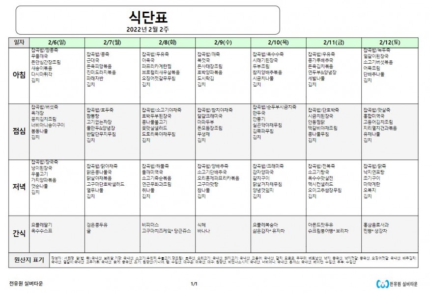 2월 2째주 식단표 페이지 정보 작성자 천유원실버타운 작성일22-02-07 08:21 조회5,706회 댓글0건 관련링크 이전글 다음글 목록 본문 2월 2째주 식단표 댓글목록 등록된 댓글이 없습니다. 이전글 다음글 목록