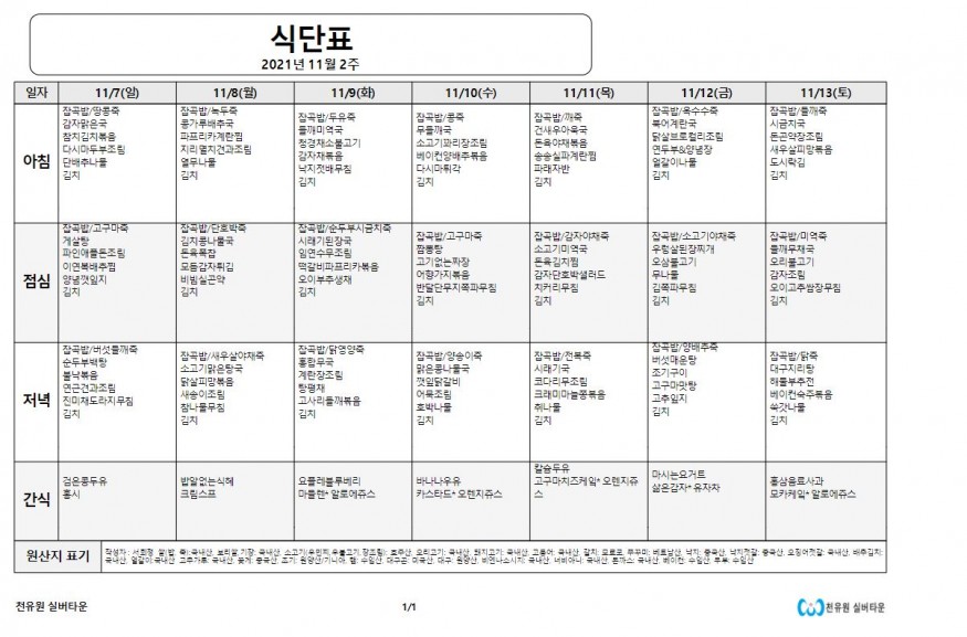 11월 2째주 식단표 페이지 정보 작성자 천유원실버타운 작성일21-11-07 07:46 조회6,985회 댓글0건 관련링크 이전글 다음글 목록 본문 11월 2째주 식단표 댓글목록 등록된 댓글이 없습니다. 이전글 다음글 목록