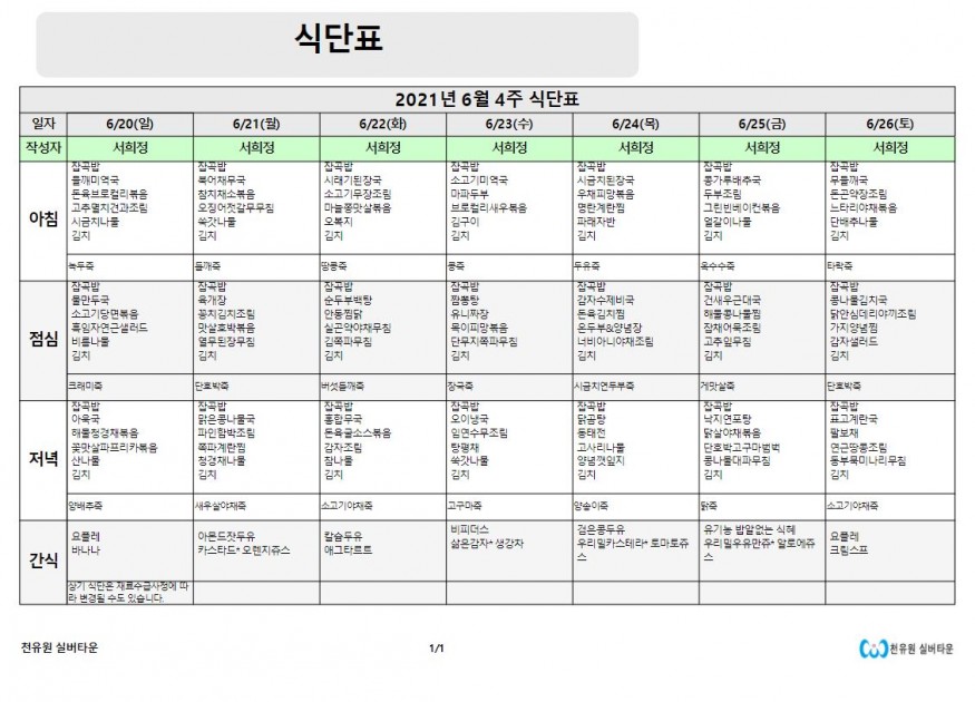 6월 4째주 식단표 페이지 정보 작성자 천유원실버타운 작성일21-06-21 07:53 조회6,060회 댓글0건 관련링크 이전글 다음글 목록 본문 6월 4째주 식단표 댓글목록 등록된 댓글이 없습니다. 이전글 다음글 목록