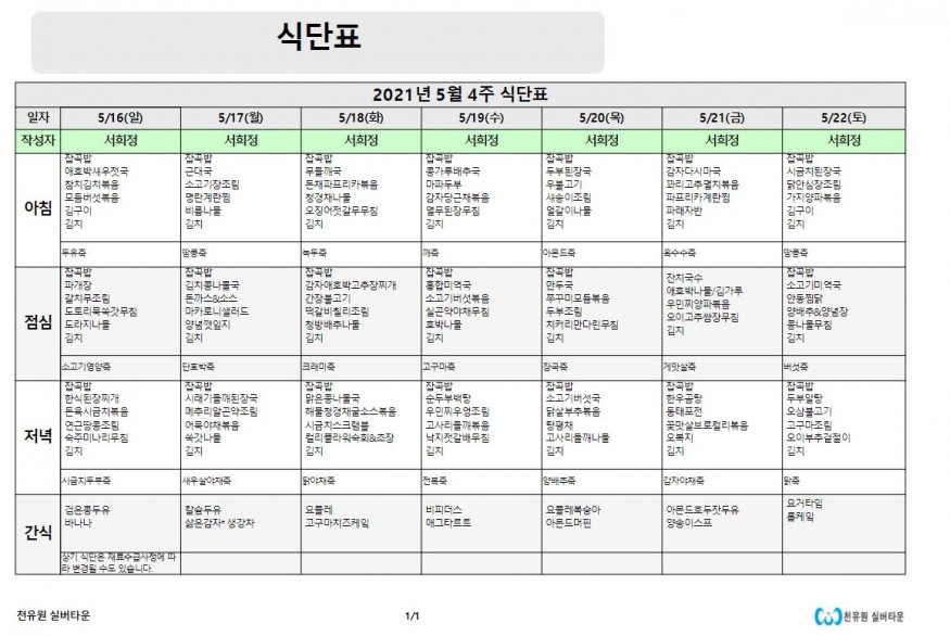 5월4째주 식단표 페이지 정보 작성자 천유원실버타운 작성일21-05-17 10:43 조회6,212회 댓글0건 관련링크 이전글 다음글 목록 본문 5월4째주 식단표 댓글목록 등록된 댓글이 없습니다. 이전글 다음글 목록