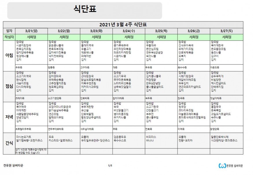3월 4째주 식단표 페이지 정보 작성자 천유원실버타운 작성일21-03-22 08:41 조회6,331회 댓글0건 관련링크 이전글 다음글 목록 본문 3월 4째주 식단표 댓글목록 등록된 댓글이 없습니다. 이전글 다음글 목록