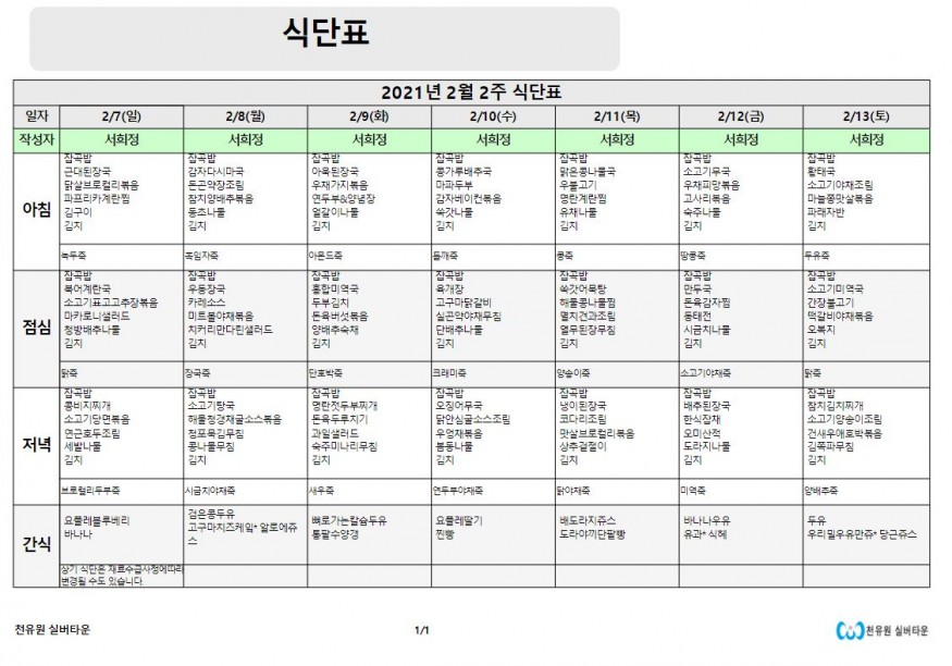 2월 2째주 식단표 페이지 정보 작성자 천유원실버타운 작성일21-02-08 08:29 조회6,310회 댓글0건 관련링크 이전글 다음글 목록 본문 2월 2째주 식단표 댓글목록 등록된 댓글이 없습니다. 이전글 다음글 목록