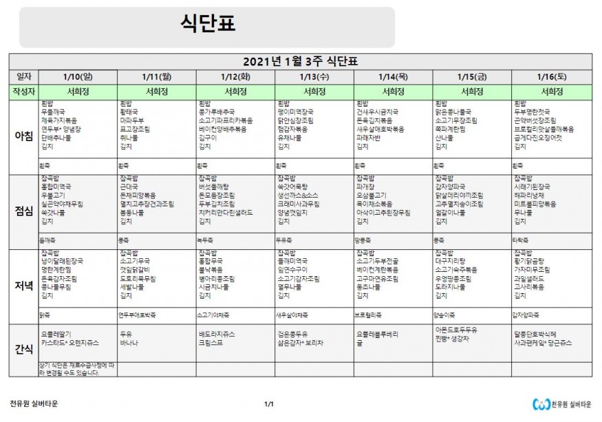 1월 3째주 식단표 페이지 정보 작성자 천유원실버타운 작성일21-01-11 10:56 조회6,302회 댓글0건 관련링크 이전글 다음글 목록 본문 1월 3째주 식단표 댓글목록 등록된 댓글이 없습니다. 이전글 다음글 목록