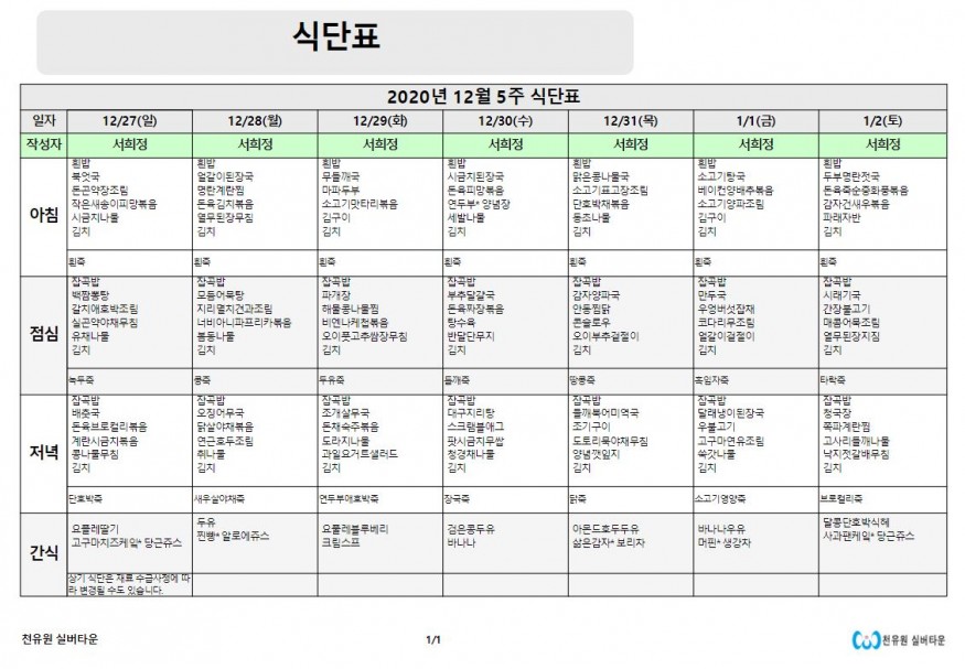 12월 5째주 식단표 페이지 정보 작성자 천유원실버타운 작성일20-12-28 07:46 조회6,356회 댓글0건 관련링크 이전글 다음글 목록 본문 12월 5째주 식단표 댓글목록 등록된 댓글이 없습니다. 이전글 다음글 목록