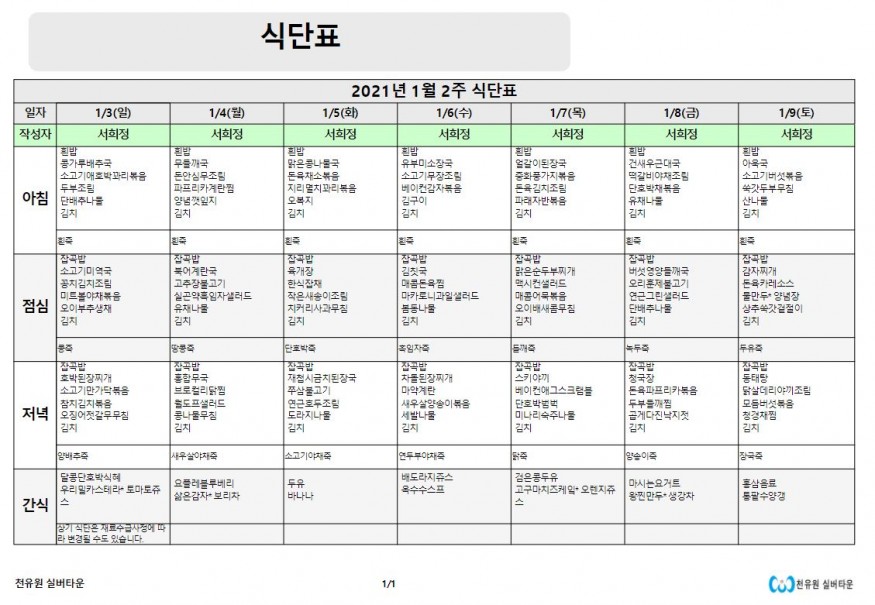 1월 2째주 식단표 페이지 정보 작성자 천유원실버타운 작성일21-01-04 08:28 조회6,261회 댓글0건 관련링크 이전글 다음글 목록 본문 1월 2째주 식단표 댓글목록 등록된 댓글이 없습니다. 이전글 다음글 목록