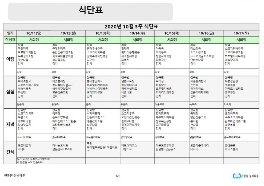 10월 3째주 식단표 페이지 정보 작성자 천유원실버타운 작성일20-10-12 08:29 조회6,229회 댓글0건 관련링크 이전글 다음글 목록 본문 10월 3째주 식단표 댓글목록 등록된 댓글이 없습니다. 이전글 다음글 목록