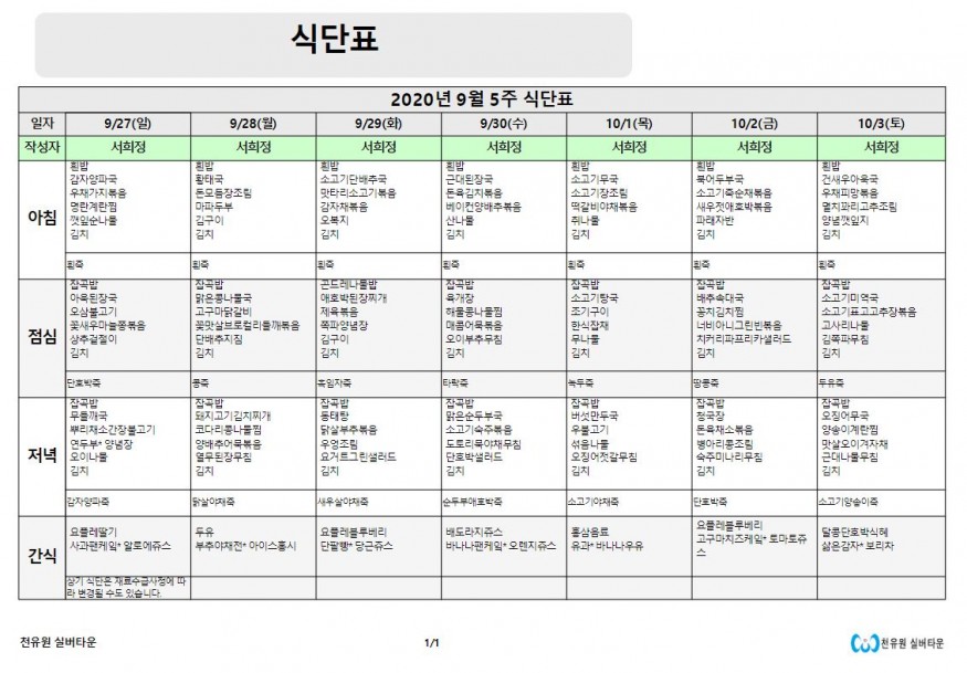 9월 5째주 식단표 페이지 정보 작성자 천유원실버타운 작성일20-09-29 15:40 조회6,438회 댓글0건 관련링크 이전글 다음글 목록 본문 9월 5째주 식단표 댓글목록 등록된 댓글이 없습니다. 이전글 다음글 목록