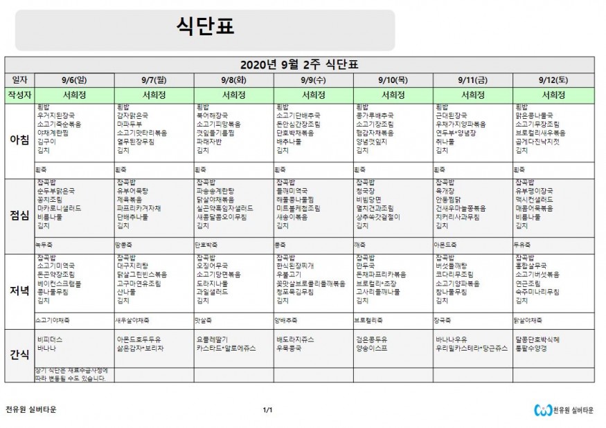 9월 2째주 식단표 페이지 정보 작성자 천유원실버타운 작성일20-09-07 07:53 조회6,313회 댓글0건 관련링크 이전글 다음글 목록 본문 9월 2째주 식단표 댓글목록 등록된 댓글이 없습니다. 이전글 다음글 목록