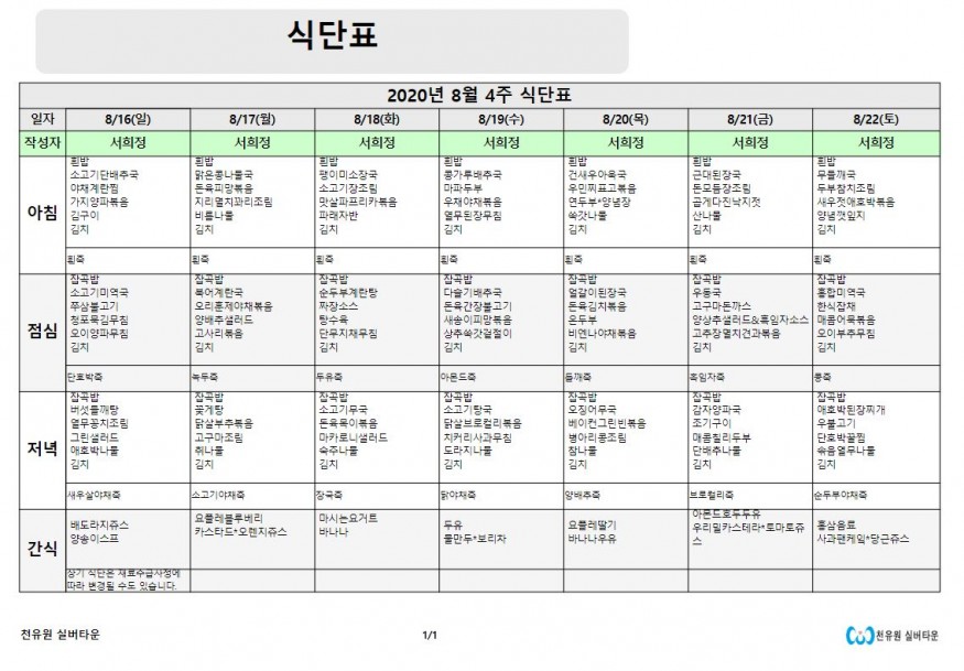 8월 4째주 식단표 페이지 정보 작성자 천유원실버타운 작성일20-08-16 13:48 조회6,314회 댓글0건 관련링크 이전글 다음글 목록 본문 8월 4째주 식단표 댓글목록 등록된 댓글이 없습니다. 이전글 다음글 목록