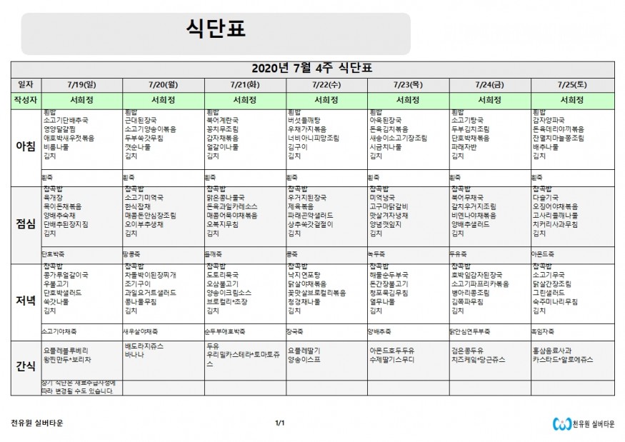7월 4째주 식단표 페이지 정보 작성자 천유원실버타운 작성일20-07-19 11:22 조회6,360회 댓글0건 관련링크 이전글 다음글 목록 본문 7월 4째주 식단표 댓글목록 등록된 댓글이 없습니다. 이전글 다음글 목록