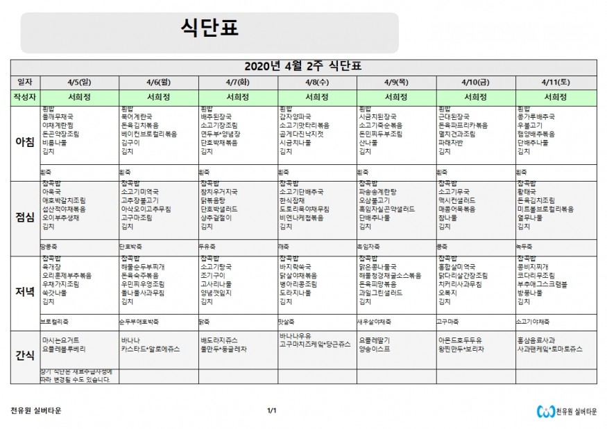 4월 2째주 식단표 페이지 정보 작성자 천유원실버타운 작성일20-04-05 07:26 조회6,447회 댓글0건 관련링크 이전글 다음글 목록 본문 4월 2째주 식단표 댓글목록 등록된 댓글이 없습니다. 이전글 다음글 목록