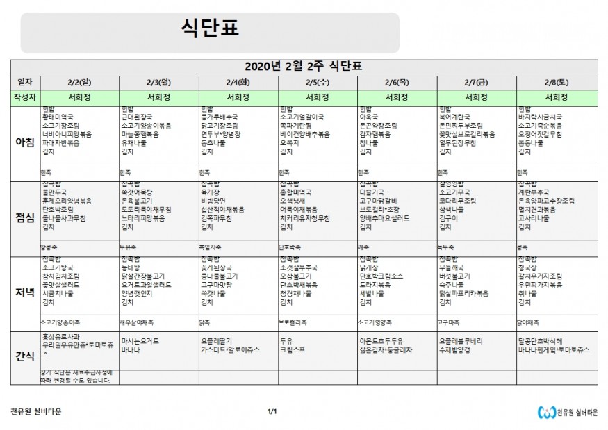 2월 2째주 식단표 페이지 정보 작성자 천유원실버타운 작성일20-02-03 08:33 조회6,424회 댓글0건 관련링크 이전글 다음글 목록 본문 2월 2째주 식단표 댓글목록 등록된 댓글이 없습니다. 이전글 다음글 목록