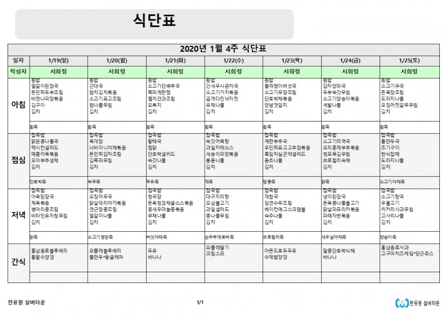 1월 4째주 식단표 페이지 정보 작성자 천유원실버타운 작성일20-01-20 15:41 조회6,465회 댓글0건 관련링크 이전글 다음글 목록 본문 1월 4째주 식단표 댓글목록 등록된 댓글이 없습니다. 이전글 다음글 목록