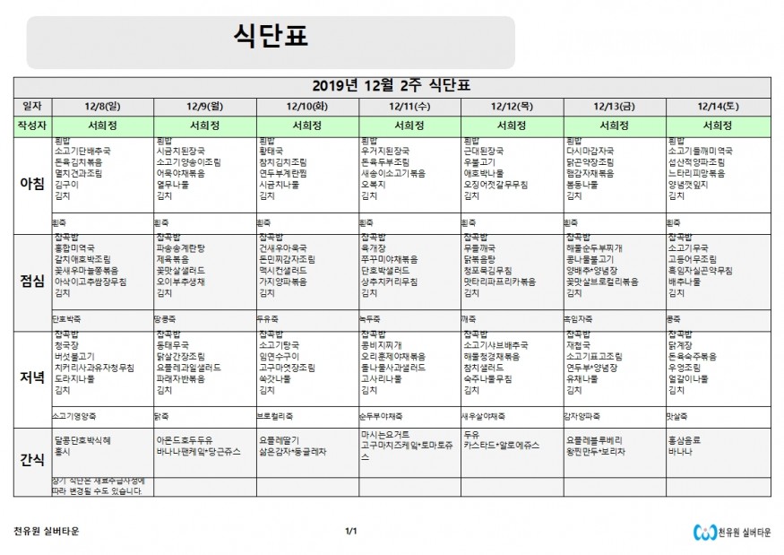 12월 2째주 식단표 페이지 정보 작성자 천유원실버타운 작성일19-12-09 13:43 조회6,503회 댓글0건 관련링크 이전글 다음글 목록 본문 12월 2째주 식단표 댓글목록 등록된 댓글이 없습니다. 이전글 다음글 목록