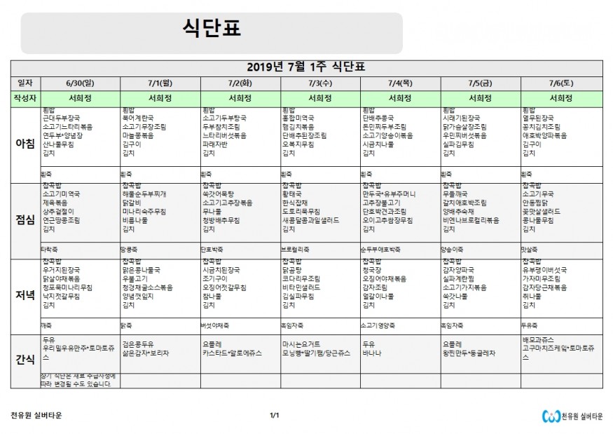 7월 1째주 식단표 페이지 정보 작성자 천유원실버타운 작성일19-07-01 10:19 조회6,577회 댓글0건 관련링크 이전글 다음글 목록 본문 7월 1째주 식단표 댓글목록 등록된 댓글이 없습니다. 이전글 다음글 목록