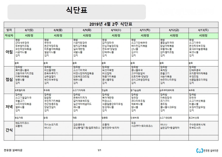 4월 2째주 식단표 페이지 정보 작성자 천유원실버타운 작성일19-04-08 10:23 조회6,455회 댓글0건 관련링크 이전글 다음글 목록 본문 4월 2째주 식단표 댓글목록 등록된 댓글이 없습니다. 이전글 다음글 목록