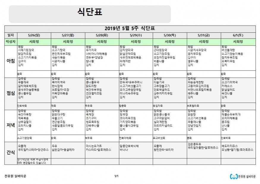 5월 5째주 식단표 페이지 정보 작성자 천유원실버타운 작성일19-05-27 09:05 조회6,375회 댓글0건 관련링크 이전글 다음글 목록 본문 5월 5째주 식단표 댓글목록 등록된 댓글이 없습니다. 이전글 다음글 목록