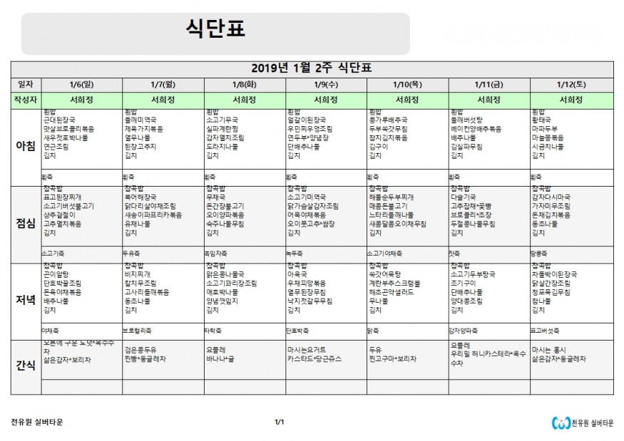 1월2째주 식단표 페이지 정보 작성자 천유원실버타운 작성일19-01-07 09:45 조회6,605회 댓글0건 관련링크 이전글 다음글 목록 본문 1월 2째주 식단표 댓글목록 등록된 댓글이 없습니다. 이전글 다음글 목록
