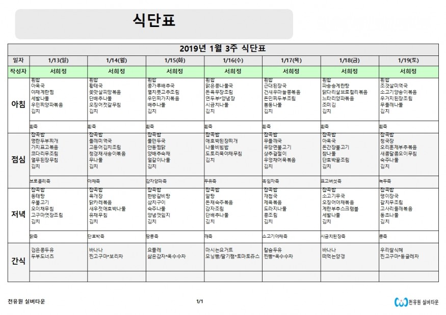 1월 3째주 식단표 페이지 정보 작성자 천유원실버타운 작성일19-01-14 10:25 조회6,508회 댓글0건 관련링크 이전글 다음글 목록 본문 1월 3째주 식단표 댓글목록 등록된 댓글이 없습니다. 이전글 다음글 목록