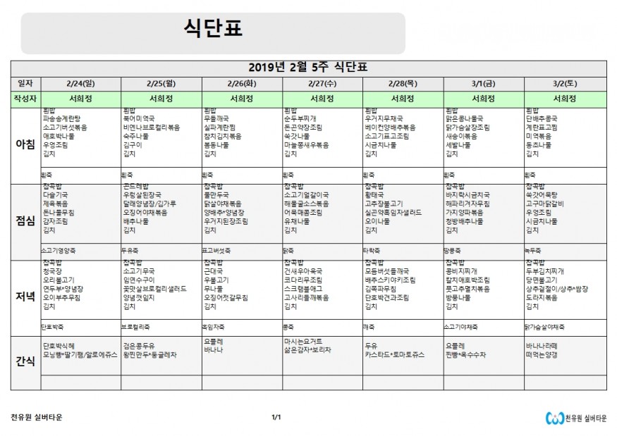 2월 5째주 식단표 페이지 정보 작성자 천유원실버타운 작성일19-02-25 10:51 조회6,483회 댓글0건 관련링크 이전글 다음글 목록 본문 2월 5째주 식단표 댓글목록 등록된 댓글이 없습니다. 이전글 다음글 목록