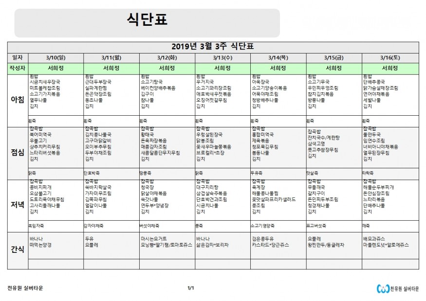 3월 3째주 식단표 페이지 정보 작성자 천유원실버타운 작성일19-03-11 09:46 조회6,538회 댓글0건 관련링크 이전글 다음글 목록 본문 3월 3째주 식단표 댓글목록 등록된 댓글이 없습니다. 이전글 다음글 목록