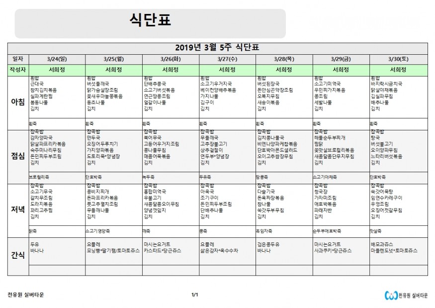 3월 5째주 식단표 페이지 정보 작성자 천유원실버타운 작성일19-03-25 09:34 조회6,410회 댓글0건 관련링크 이전글 다음글 목록 본문 3월 5째주 식단표 댓글목록 등록된 댓글이 없습니다. 이전글 다음글 목록