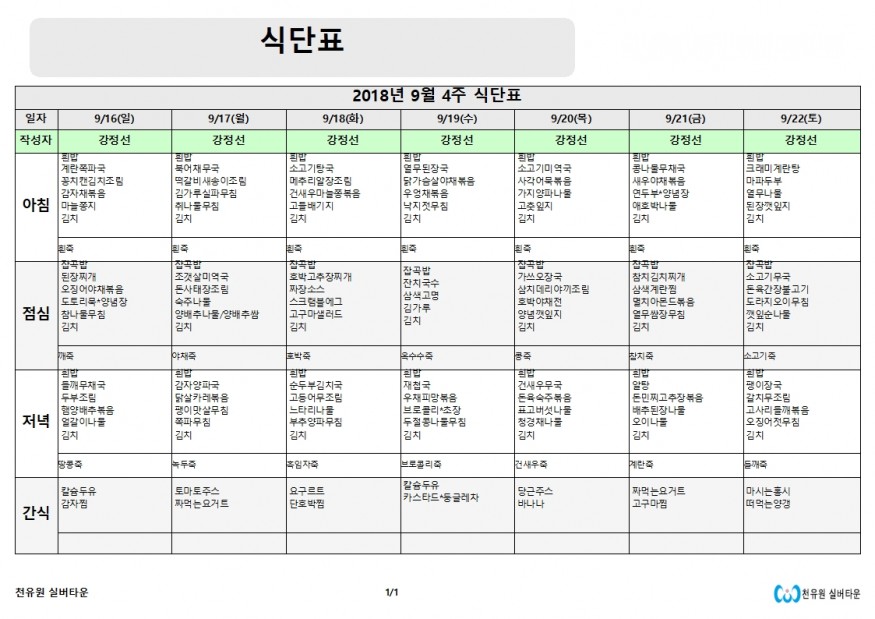 9월4째주 식단표 페이지 정보 작성자 천유원실버타운 작성일18-09-14 15:31 조회6,524회 댓글0건 관련링크 이전글 다음글 목록 본문 9월4째주 식단표 댓글목록 등록된 댓글이 없습니다. 이전글 다음글 목록