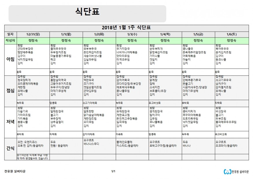 1월 1주 식단표 페이지 정보 작성자 천유원실버타운 작성일18-01-26 16:31 조회7,276회 댓글0건 관련링크 이전글 다음글 목록 본문 1월 첫째주 식단표입니다. 댓글목록 등록된 댓글이 없습니다. 이전글 다음글 목록
