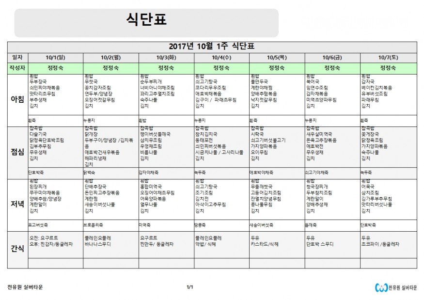 10월 1주 식단표 페이지 정보 작성자 천유원실버타운 작성일17-12-09 10:30 조회7,270회 댓글0건 관련링크 이전글 다음글 목록 본문 10월 첫째주 식단표입니다. 댓글목록 등록된 댓글이 없습니다. 이전글 다음글 목록