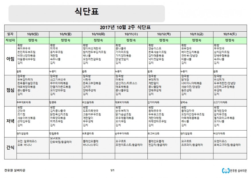 10월 2주 식단표 페이지 정보 작성자 천유원실버타운 작성일17-12-09 10:33 조회6,958회 댓글0건 관련링크 이전글 다음글 목록 본문 10월 둘째주 식단표입니다. 댓글목록 등록된 댓글이 없습니다. 이전글 다음글 목록