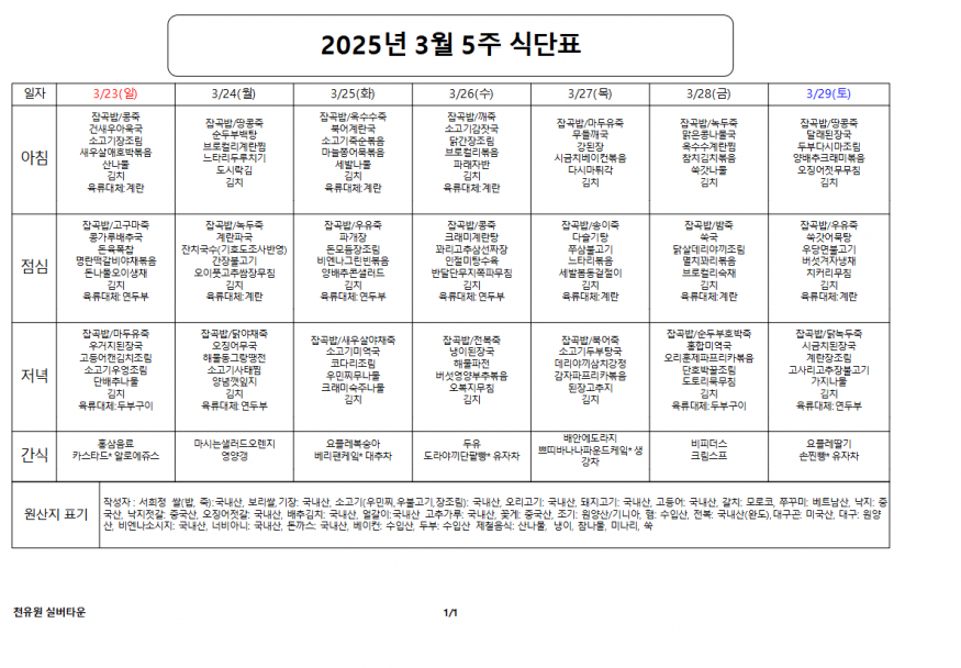 3월 5째주 식단표 페이지 정보 작성자 천유원실버타운 작성일25-03-25 09:03 조회3,982회 댓글0건 관련링크 이전글 다음글 목록 본문 3월 5째주 식단표 댓글목록 등록된 댓글이 없습니다. 이전글 다음글 목록