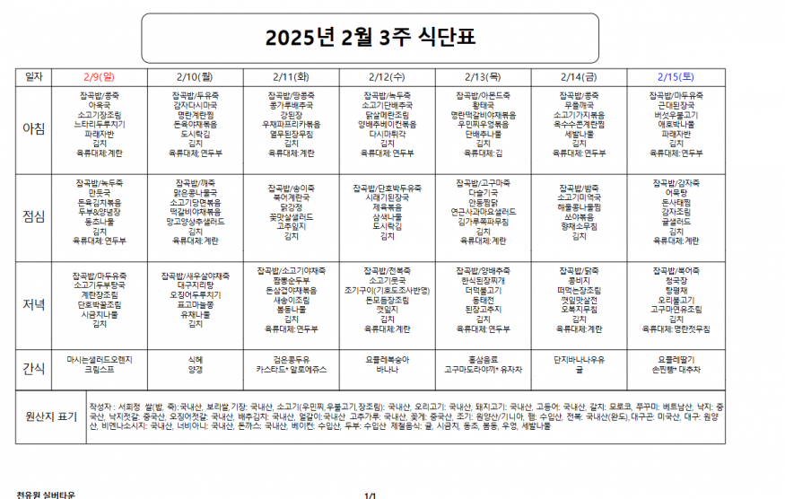 2월 3째주 식단표 페이지 정보 작성자 천유원실버타운 작성일25-02-10 08:26 조회4,755회 댓글0건 관련링크 이전글 다음글 목록 본문 2월 3째주 식단표 댓글목록 등록된 댓글이 없습니다. 이전글 다음글 목록