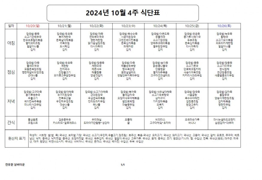 10월 4째주 식단표 페이지 정보 작성자 천유원실버타운 작성일24-10-21 08:36 조회5,108회 댓글0건 관련링크 이전글 다음글 목록 본문 10월 4째주 식단표 댓글목록 등록된 댓글이 없습니다. 이전글 다음글 목록