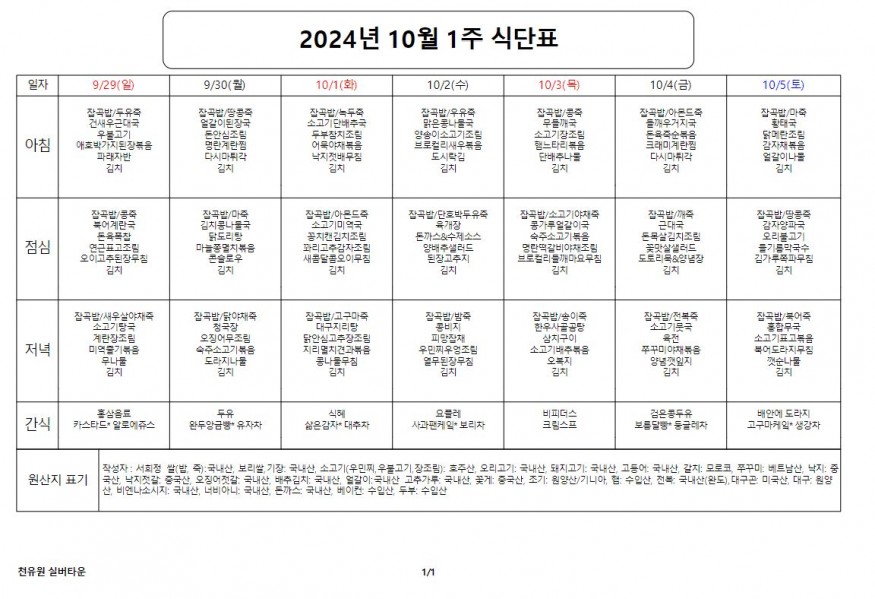10월 1째주 식단표 페이지 정보 작성자 천유원실버타운 작성일24-09-27 14:35 조회5,097회 댓글0건 관련링크 이전글 다음글 목록 본문 10월 1째주 식단표 댓글목록 등록된 댓글이 없습니다. 이전글 다음글 목록