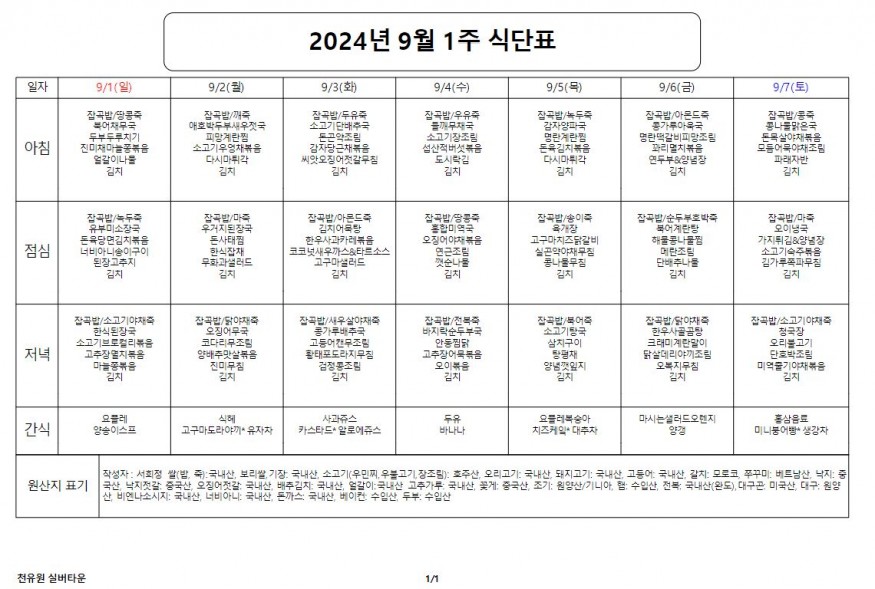 9월 1째주 식단표 페이지 정보 작성자 천유원실버타운 작성일24-09-02 09:56 조회5,165회 댓글0건 관련링크 이전글 다음글 목록 본문 9월 1째주 식단표 댓글목록 등록된 댓글이 없습니다. 이전글 다음글 목록