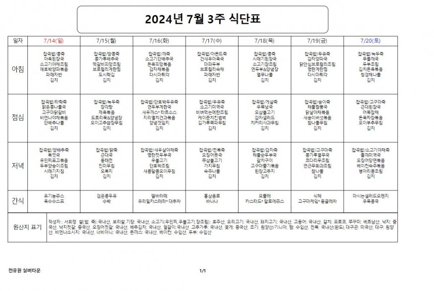 7월 3째주 식단표 페이지 정보 작성자 천유원실버타운 작성일24-07-15 16:37 조회5,211회 댓글0건 관련링크 이전글 다음글 목록 본문 7월 3째주 식단표 댓글목록 등록된 댓글이 없습니다. 이전글 다음글 목록