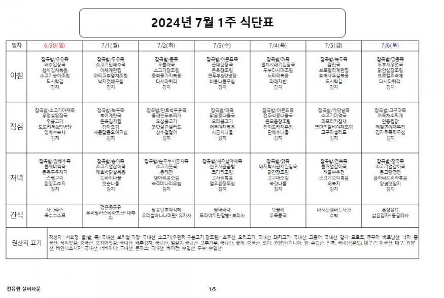 7월 1째주 식단표 페이지 정보 작성자 천유원실버타운 작성일24-07-01 09:02 조회5,234회 댓글0건 관련링크 이전글 다음글 목록 본문 7월 1째주 식단표 댓글목록 등록된 댓글이 없습니다. 이전글 다음글 목록