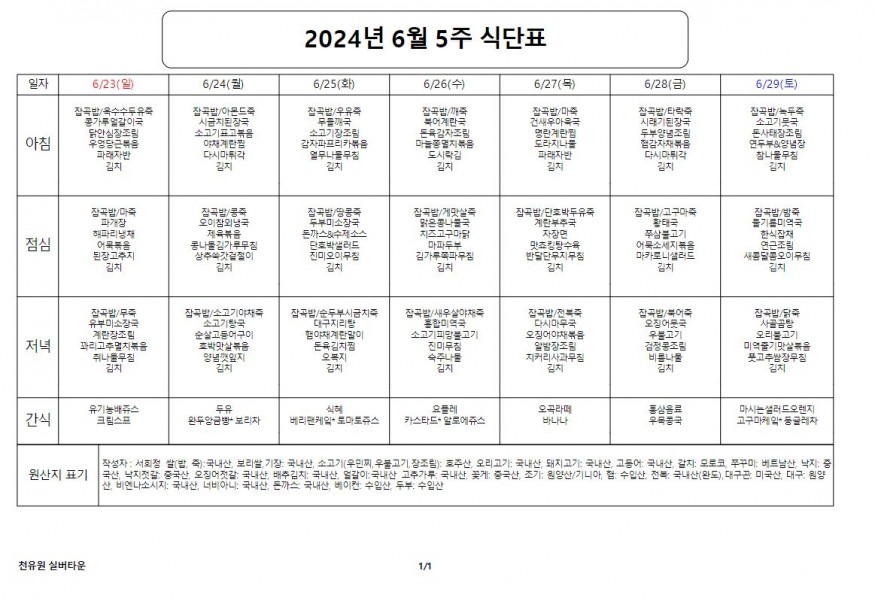 6월 5째주 식단표 페이지 정보 작성자 천유원실버타운 작성일24-06-24 09:45 조회5,212회 댓글0건 관련링크 이전글 다음글 목록 본문 6월 5째주 식단표 댓글목록 등록된 댓글이 없습니다. 이전글 다음글 목록