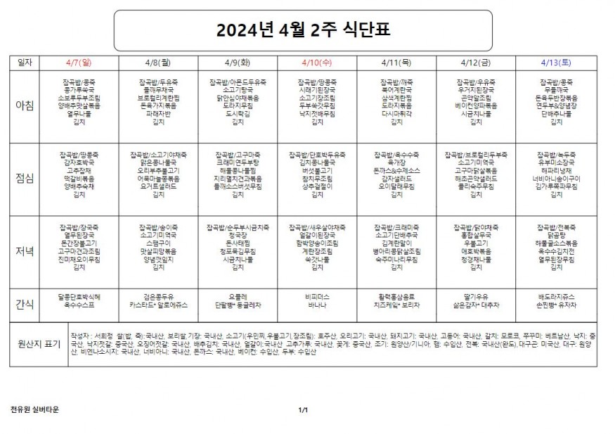 4월 2째주 식단표 페이지 정보 작성자 천유원실버타운 작성일24-04-08 09:44 조회5,316회 댓글0건 관련링크 이전글 다음글 목록 본문 4월 2째주 식단표 댓글목록 등록된 댓글이 없습니다. 이전글 다음글 목록