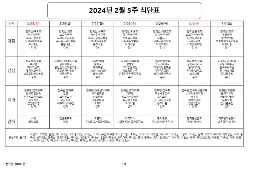 2월 5째주 식단표 페이지 정보 작성자 천유원실버타운 작성일24-02-27 10:44 조회5,340회 댓글0건 관련링크 이전글 다음글 목록 본문 2월 5째주 식단표 댓글목록 등록된 댓글이 없습니다. 이전글 다음글 목록