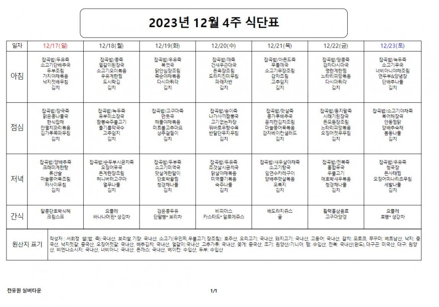 12월 4째주 식단표 페이지 정보 작성자 천유원실버타운 작성일23-12-19 16:25 조회5,450회 댓글0건 관련링크 이전글 다음글 목록 본문 12월 4째주 식단표 댓글목록 등록된 댓글이 없습니다. 이전글 다음글 목록