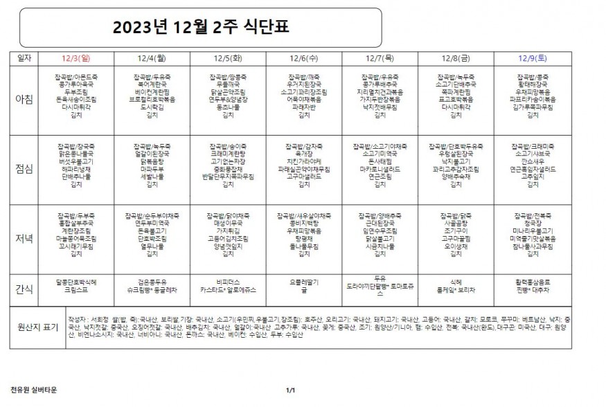 12월 2째주 식단표 페이지 정보 작성자 천유원실버타운 작성일23-12-01 14:18 조회5,526회 댓글0건 관련링크 이전글 다음글 목록 본문 12월 2째주 식단표 댓글목록 등록된 댓글이 없습니다. 이전글 다음글 목록